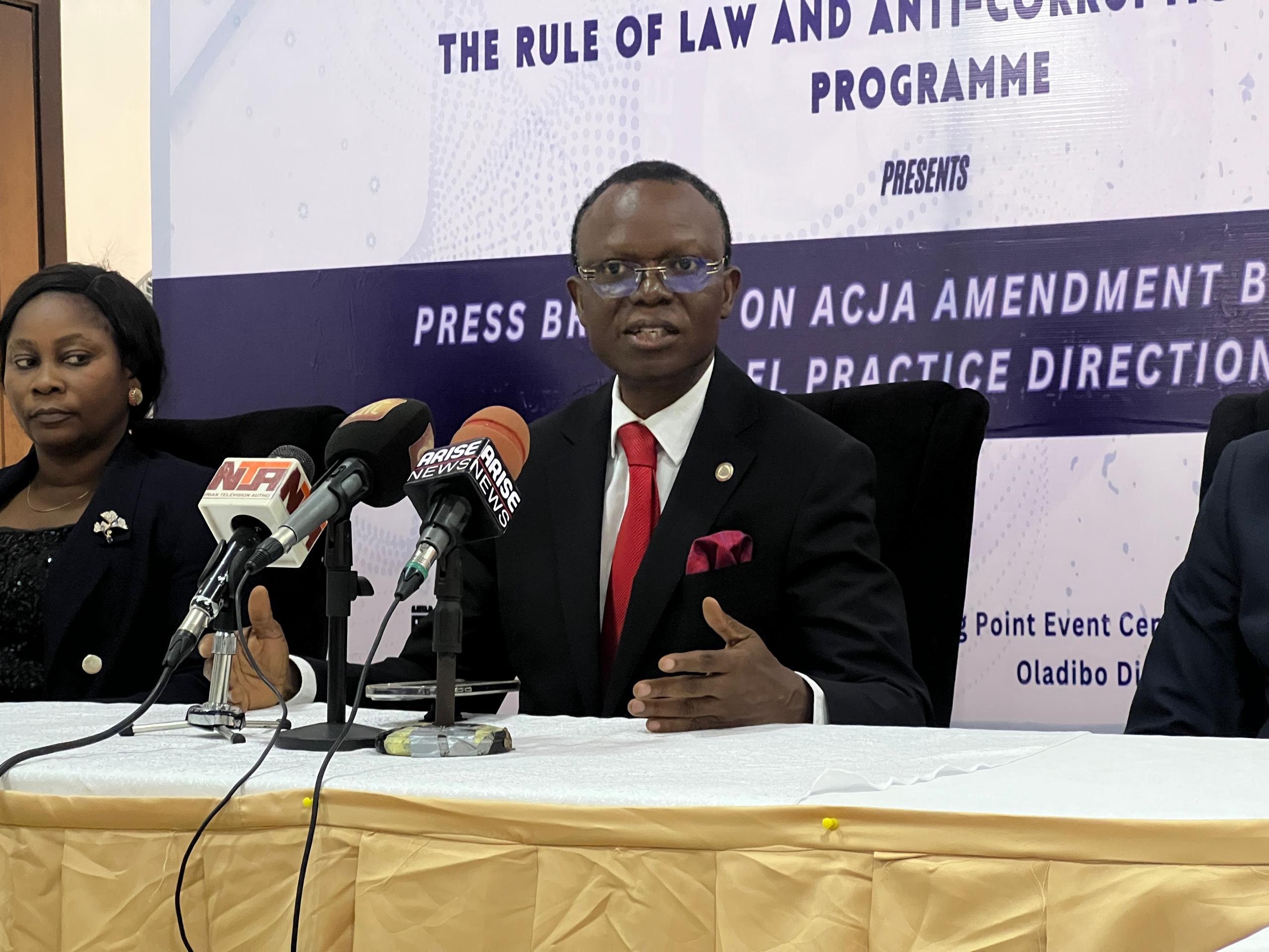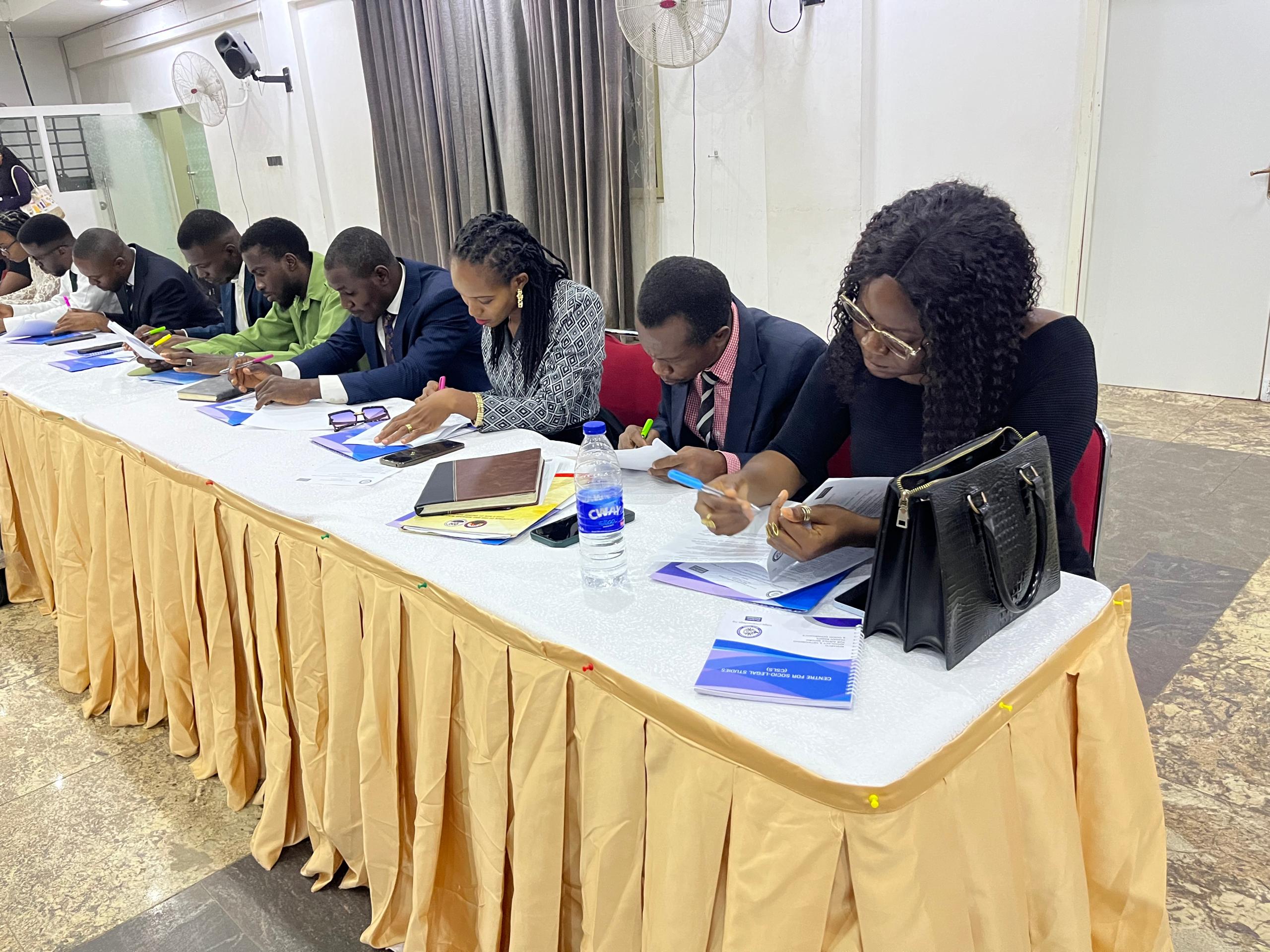 Prof Yemi Akinseye George SAN(President CSLS),Prof Peter T. Akper OFR, SAN,(NIALS),Toyo Jimmy (Legal Aide to chairman, Judiciary Committee HofREPS),Chris Umar,Esq(Solicitor-General & Perm sec, Min of Justice Kaduna),Enenche Eleojo,Esq(Special Assistant to the CJ of FCT),Mrs B.O. Akinseye George, Esq ED, CSLS